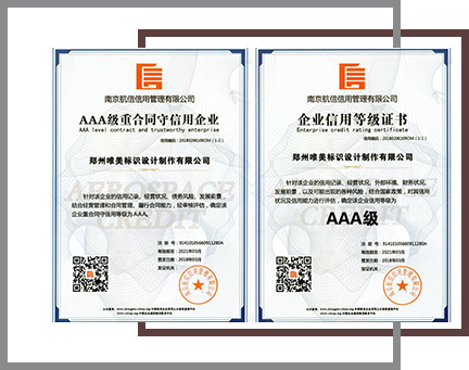 生產(chǎn)制作的每一件產(chǎn)品的原材料嚴(yán)格按照國家標(biāo)準(zhǔn)執(zhí)行,產(chǎn)品質(zhì)保最長10年;免費(fèi)上門服務(wù)、免費(fèi)深化標(biāo)識設(shè)計(jì)方案、免費(fèi)鄭州市內(nèi)送貨上門;口碑廣為流傳、70%客戶來自于老客戶轉(zhuǎn)介紹;